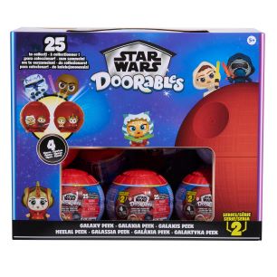 Disney DoorablesCatalogue Number: JP-44896Behind every door, a surprise is in store with the STAR WARS™ Doorables Galaxy Peek Series 2. Discover an out-of-this-world 4 from a collection of 25 mini figures inspired by 11 iconic STAR WARS movies and shows chronologically spanning STAR WARS: THE PHANTOM MENACE™ through STAR WARS: THE RISE OF SKYWALKER™. Chase after rare and ultra-rare characters like Obi-Wan Kenobi, Kylo Ren, Ahsoka, Queen Amidala, Cad Bane, and more. The unique Death Star-inspired capsule doubles as a display. Each mini figure stands approximately 1.5 inches tall and is intricately styled with Doorables’ signature glittery eyes. Ideal for collecting and trading, fans of STAR WARS toys will love to display and share these toys inspired by a galaxy far, far away. STAR WARS Doorables Galaxy Peeks make wonderful birthday or anytime surprises for fans of STAR WARS toys and kids ages 5 years